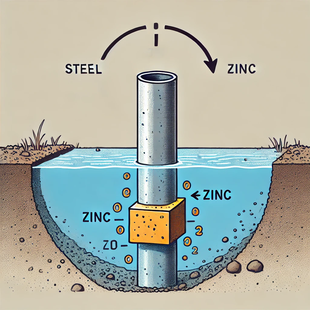 즉, 강재보다 전기화학적으로 덜 귀한(더 반응성 높은) 금속을